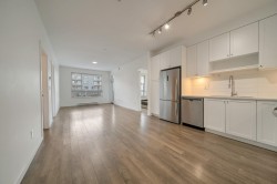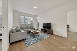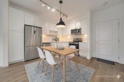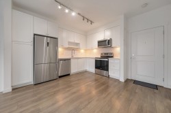 Welcome to Kings Landing by Dawson + Sawyer, where modern design meets everyday comfort. This nearly new 2-bedroom+den, 2-bathroom condo offers a bright, open floor plan with 10-foot ceilings and quality finishes throughout. The sleek white kitchen is the heart of the home, featuring quartz countertops, a large island, and high-end stainless steel appliances, perfect for cooking and entertaining. The spacious primary bedroom includes a walk-in closet and ensuite, while the covered balcony provides a relaxing outdoor retreat. Complete with in-suite laundry, storage locker, and parking, with the option to add another spot. 8x8 Den can be easily converted to a 3rd bedroom. A beautifully maintained home in a sought-after community—don’t miss it!