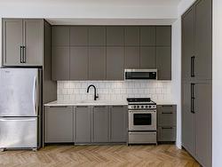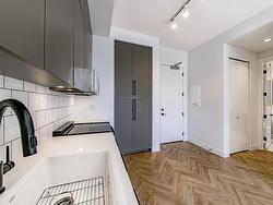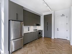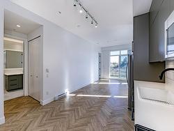 Move in Ready! This corner unit spacious one bedroom, one bathroom home in Parker by Mosaic includes one parking and locker. It's ideal for anyone looking to live in or invest. Upon entering, you'll immediately notice the 10-foot ceilings that add to the airy and bright feel of the home. The herringbone flooring pairs perfectly with the contemporary kitchen and bathrooms. The layout of the home is very efficient, with oversized windows and a big balcony. The location is unbeatable, with easy access to Surrey City Centre, SFU & KPU, Surrey Central skytrain, parks and more.