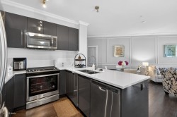 Welcome to Prescott Commons at Harvard Gardens, by award-winning Polygon. This spacious 1 bedroom + Den (can be used as a 2nd bedroom)& 1 bath unit with an open concept layout features over height 9 ft ceilings, engineered stone countertops, laminate flooring, and stainless steel appliances including gas range. Large windows fill the suite with natural light, and the covered balcony is perfect for morning coffee or evening wind-downs. Residents enjoy exclusive access to The Rowing Club with resort-style amenities: outdoor pool & hot tub, full gym, basketball court, lounge, theatre room and more. All in a superb Morgan Creek location just minutes to Hwy 99, Morgan Crossing & Grandview Corners shopping, restaurants, transit and great schools.