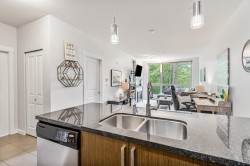 FANTASTIC OPPORTUNITY in the heart of Morgan Crossing! This bright 1 bed, 1 bath upper condo unit features a functional open-concept layout with a practical kitchen boasting granite countertops & SS appliances, flowing seamlessly into the dining & living areas. Oversized windows fill the space with natural light and offer lovely views of the courtyard & playground. Enjoy over 8,200 sqft of resort-style building amenities, including an outdoor pool, hot tub, gym, yoga room, & a spacious clubhouse perfect for gatherings. Just steps from shops, restaurants, groceries, schools & transit, this home is PERFECT for first-time buyers seeking lifestyle, convenience, & community, or for buyers looking for a property with a great tenant in place. Includes 1 secure parking & storage. 2 pets allowed.