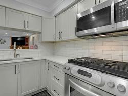 Prime Location !!! very well maintained with many updates ,In the heart of Newton 3 bedroom end unit - very private yard. Spacious/Open concept for living/dining room leading to a rear wood deck with glass canopy and fenced rear yard with exceptional landscaping. Kitchen boasts stainless appliances with gas stove- convection oven combo. OTR micro/hood fan and counter lighting. A must see .modern trim package, extensive lighting package throughout. Upper floor features a exceptionally large master bedroom with walk-in-closet and deluxe en suite with 5' walk-in shower. Additional storage room +4' crawl space/ ideal for storage. Close to both level of schools, shopping Malls and Recreation center !! Must see and great value at this price.