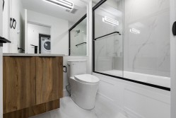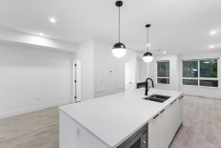 Brand-new, ultra-modern 3-bedroom + Den, 2.5-bath townhome backing onto a protected lush greenbelt. The bright, airy main level features 9' ceilings, Fisher & Paykel appliances, motorized blinds, and a kitchen made for cooking enthusiasts with a gas cooktop, quartz countertops, and ample storage in custom cabinetry. The Park Landmark features a playground surrounded by nature and private amenity building perfect for events. This unit features a spacious double garage with rough in EV. Just a short drive to Hyland Elementary and Sullivan Heights Secondary, and minutes to Newton Town Centre, shops, parks, transit, and major amenities.