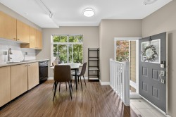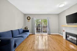 Welcome to Sundance! Ideally situated in a quiet part of the complex with a convenient South Surrey location. The North-facing kitchen overlooks a fenced yard, while the main floor offers solid hardwood flooring, a cozy fireplace, and a sunny South-facing balcony. Upstairs you'll find a spacious primary bedroom, a second bedroom, and a full bath. The lower level features a generous rec room with sliding door access to the yard—perfect for a third bedroom or office. Rough-in plumbing offers the potential for an additional bathroom. Includes a single garage plus covered carport for extra parking.