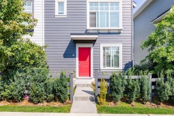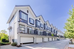RARE OPPORTUNITY!! PRIME LOCATION! Just like brand new CORNER townhouse with 3 bedrooms + 1 den & 2 full& half bathrooms! Open concept main floor with modern kitchen granite countertops, an unobstructed island, dining room and living room offering access to a huge balcony. Master bedroom for a king size bed , walk in closet and private ensuite with a double vanity & oversized shower on the upper level. Conveniently located right in front of William F. Davidson Elementary, Johnston Heights Secondary with IB program, Lionel Courchene Park, Guildford Mall, you can walk to T&T Supermarket, Walmart, Guildford Mall, restaurants, banks, and a recreation centre. Enjoy quick and easy access to Highway 1. Fenced & gated front yard & Double garage with EV installed.