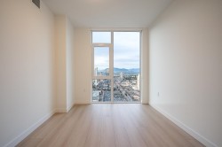 SUB-PENTHOUSE at Century City, quality built by Century Group. Stunning NW CORNER | 2 BED | DEN | 2 BATH, almost 1,000 sq.ft. of refined living with spectacular panoramic city, water, and mountain views. 9’ ceilings, floor-to-ceiling windows, laminate flooring throughout, the home is bright, elegant, and functional. Gourmet kitchen features quartz countertops, Fulgor Milano S/S and GAS cooktop. Spacious primary bedroom includes walk-in closet, a spa-inspired ensuite with rainfall shower and mirrored medicine cabinet. Enjoy over 40,000 sq.ft. of luxury resort-style amenities, including a Fully Equipped GYM, Lounge, Games Room and much more! Steps to King George SkyTrain Station and King George Hub with restaurants, shops, banks. Walking distance to SFU, and future UBC campus. 10/10!