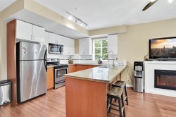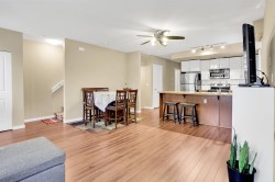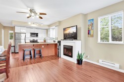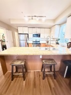 Unbeatable location! This bright and cozy corner unit offers exceptional value and comfort. Featuring 4 spacious bedrooms including the one conveniently located on the main floor along with a powder room, this home is ideal for a bigger family. The main floor boasts durable laminate flooring while beautiful kitchen is equipped with granite countertops and stainless steel appliances. NEW! washer/dryer, water tank heater & Over the range microwave. Additional highlights include in-suite laundry, 2 full bathrooms and 2 parking spaces. Located in a high demand area, just 3 mins walk to school, 7 mins to Central City Mall and 10 mins to Skytrain. Book your private showings now! Easy to show. OPEN HOUSE SUN 2-4PM