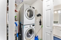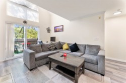 Welcome to this immaculate, bright and spacious TOP FLOOR, END UNIT which offers 2 bed & 2 bath, living room with vaulted ceiling and upgrades including floor, washer/dryer, Dish washer, hot water tank, lighting and more. Roof replaced in 2020. Unit comes with two parking spots. Well maintained building with car wash in parking. Spacious storage locker. Close to transit, shopping, Restaurants, Banks, Library & Movie Theaters. All of this yet the condo is tucked in a quiet residential setting, pets allowed and strata fee includes Radiant-Heat and Gas fireplace.
