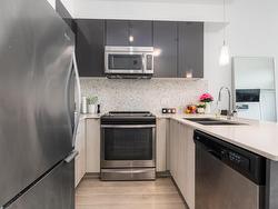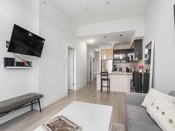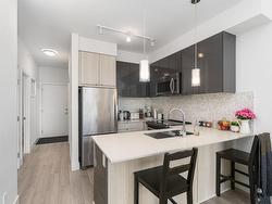 Welcome to YALE BLOC! This beautiful 2 bed 2 bath west facing PENTHOUSE offers 9’ ceilings and an open concept layout perfect for modern living. The kitchen features quartz countertops, stainless steel appliances, two-tone soft-close cabinets, a breakfast bar, and stylish pendant lighting. Enjoy your PRIVATE COURTYARD facing balcony, while the spacious primary bedroom includes a walk in closet and a sleek ensuite with frameless glass shower. Laminate flooring throughout adds durability and ease. Centrally located steps from Willowbrook Mall, restaurants, parks, schools, the future SkyTrain and much more. Perfect for FIRST TIME HOME BUYERS or INVESTORS! Book your private showing today!