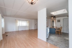 Cherry Brook Park-Own Your Land! Solid double-wide home sits on a spacious, pie-shaped lot in the desirable 55+ community of Cherry Brook Park, this property offers privacy, space, and convenience in one package. Parking for 4 vehicles, Powered 10’ x 8’ shed perfect for hobbies or storage, Attached 10’ x 5’ storage room, Large outdoor deck ideal for entertaining, Pet-friendly, Upgrades: New flooring throughout, Fresh interior paint, bathroom with new shower, Some new thermal windows,10-year-old high-efficiency gas furnace. Bright open living features a sunny skylight, the spacious kitchen, plenty of room to cook and gather. Mstr bedroom easily fits a king-size bed. Clubhouse, great location, access to Hwy 99, Beach, shopping, hospitals, recreation, and transit. Affordable opportunity!