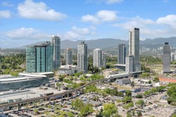 Soaring on the 45th floor of Park Avenue West, this 3-bedroom, 2-bathroom home delivers breathtaking panoramic views of the city, mountains and beyond. The modern open layout features a premium kitchen with gas cooktop, sleek cabinetry, and high-end appliances. Resort-inspired amenities include an outdoor pool, hot tub, tennis court, golf-simulator, fitness centre, theatre, entertainment lounge and more. Complete with secure parking and storage, all just steps to Skytrain, shopping, dining, and parks - luxury living in Surrey's vibrant city centre!