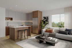 Welcome to Harlowe -- a boutique collection of 86 thoughtfully crafted stacked townhomes and condos in South Surrey's Grandview Heights neighbourhood. From studios to 2, 3 & 4 bedroom homes, each residence is designed for elevated everyday living. This 1-bedroom layout features an open-concept designer kitchen, quartz countertops, Samsung appliance package and spacious patio on select homes. Surrounded by parks, trails, and natural beauty, Harlowe is your own private oasis--just minutes to White Rock Beach, Hwy 99, shops, and cafes. Estimated completion is early 2028. Sales Gallery open by APPOINTMENTS ONLY. Located at 1570 George Street, White Rock.