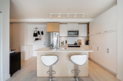 Discover this stunning 1-bedroom + den home offering 693 sqft of bright west-facing living space.The open concept layout features sleek laminate flooring, quartz countertops, and stainless steel appliances. A spacious den adds versatility for a home office or guest space. This unit includes 1 parking stall and 1 storage locker for your convenience. Enjoy an array of modern amenities, including an outdoor BBQ area, social lounge, fitness centre, and calming yoga studio--perfect for both entertaining and unwinding.