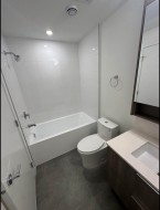Welcome to VIKTOR, centrally located near Surrey City Centre with easy access to all amenities, SkyTrain, and the future 140th Street Station. This spacious 1 bed, 1 bath home features high ceilings, wide plank laminate flooring, and a modern kitchen with elegant two-toned cabinetry, quartz countertops, and ample storage. Enjoy brand-new living with peace of mind under the 2-5-10 New Home Warranty. Fantastic building amenities include a large courtyard, gym, party room, and a multi-function room with kitchen and rooftop terrace. Excellent location within walking distance to Forsyth Elementary, Forsyth Park, and SkyTrain. Perfect for first-time buyers or investors!
