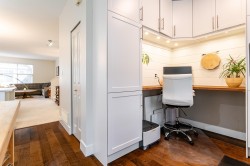 Rarely available end-unit w/large yard off the kitchen in popular Uplands by Polygon! This is a beautifully updated 3-bed & den, 3-bath, 1400+ sq ft townhome! End unit has BIG windows! Terrific open layout plan too! Main floor features kitchen w/updated quartz counters, mosaic tile backsplash, refaced cabinets, engineered hardwood floors, S/S appliances & GAS stove! Custom build home office/den on the main floor with plenty of light. You'll love working from home here! 3 large bedrooms - plenty of space for kids to grow! Primary bedroom ensuite w/dual sinks & separate shower/tub. Spacious south-facing patio & fully fenced grassy yard right off the kitchen - just perfect for the littles & pets! Plus...the famous resort-class amenities are truly the best. You'll spend your summers here!