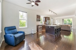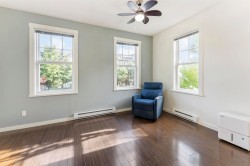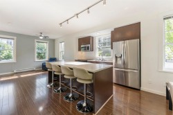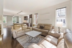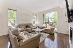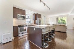 Welcome to the Kew by Mosaic Homes! Step into this designer 2 bedroom + den (The den could be converted to 3rd bedroom) Very functional and spacious layout. A very large deck with great location, stylish laminate flooring throughout the main floor, spacious designer kitchen, built-in microwave hood fan and ceramic top low profile stove and stainless steel fridge, 9 ft. ceilings on main floor, tiled entry, large ensuite bathroom upstairs as well as main bath with deep soaker tub and a 2 pce washroom on the bottom floor. Close to transit and amenities.