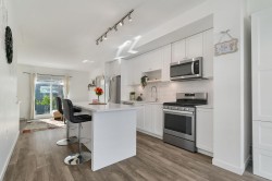 Welcome to your contemporary oasis in South Surrey's Grandview Heights, where modern living meets family-friendly convenience! This beautifully maintained townhouse, built in 2019, boasts a spacious 1413 sqft layout featuring 3 bedrooms plus a versatile den that can easily transform into a 4th bedroom. The open-concept main floor is bathed in natural light and showcases sleek finishes, including a gourmet kitchen with stainless steel appliances and quartz countertops, perfect for entertaining. Enjoy the luxury of a master ensuite and the comfort of 2.5 additional bathrooms. Step outside to a charming fenced front yard and a south-facing balcony, perfect for your summer bbq. Located in a vibrant neighborhood, you're just moments away from top-rated schools. O/H on Sun Sept 21 from 2-4pm