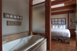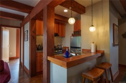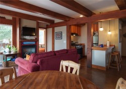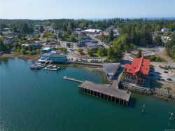 NIGHTLY RENTAL or LIVE-IN - Sunrise ocean view timber frame condo with locally sourced cedar and Douglas fir beams for sale at Whiskey Landing in the heart of Ucluelet. This beautifully appointed homey and elegant suite offers two bedrooms and two bathrooms, with an open living, dining, and kitchen area to create a bright and spacious atmosphere. The master bedroom has an ensuite bathroom with a soaker tub, making it a great space to relax. Indulge in views of Ucluelet Inlet and surrounding mountains from the comfort of your living area with a cozy fireplace. This property can be used as your permanent home, a personal vacation getaway, or a self-managed nightly rental, providing flexibility to meet your unique needs. Current use is a residential apartment and part-time nightly rental. Easy access to the Village Square, Whiskey Dock, Ucluelet Aquarium, and all of the town amenities. Owner enjoys generous revenue to off-set operating costs.