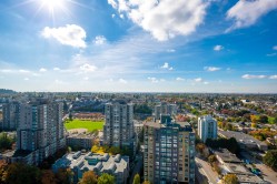 Located in the prestigious JOYCE development by Westbank, this unit boasts partial views of the mountains and city.This 3 year old 2 Bed + DEN is the necessity of your comfortable living. Air-Conditioned Suite offers amazing mountain and city view. Open-concept kitchen with integrated appliances, a gas cooktop,quartz countertops, and laminate flooring. Rooftop {30th floor) amenities include a gym,recreation/dining room, rooftop garden + playground and bbq area, study rooms, music room. Conveniently located near shopping, dining, bus station and Joyce-Collinwood Skytrain station,easy to get to downtown,Vancouver and Burnaby!Don't miss out this amazing opportunity to invest or to live by yourself.Call today for your private showing.Open House,Mar 30,2-4pm.