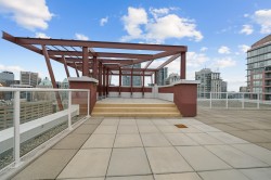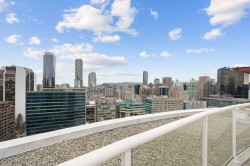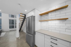Absolutely STUNNING, fully renovated 2-level North-East corner loft at THE SPOT! Soaring double-height ceilings flood the space with natural light, highlighting polished concrete floors and a sleek chef’s kitchen with quartz counters, stainless steel appliances, soft-close cabinetry, breakfast bar and the spa-inspired bath with walk-in shower. Bespoke steel staircase leads to a spacious upper bedroom with workstation, walk-in closet, and insuite laundry. Unique West-Coast reclaimed wood accents throughout - custom barn door, shelves, stair treads and flooring. BONUS: Private covered balcony for fresh air and city vibes! The Spot's amenities include concierge, gym, lounge, BBQ terrace, and rooftop decks. 1 Parking included. Pet and short-term rental friendly building. This is a MUST SEE!
