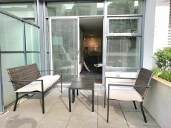 Available for World Cup Soccer Accommodations, call or message us for details www.Kipsmithhomes.com Furnished large 600 sqft studio with a Queen sized wallbed unit, a fully stocked kitchen, kitchen island with chairs, a Desk and a Big walk-in closet Located at 1777 W. 7th ave, a 12 storey concrete midrise bldg, with 24 hr concierge service on the main floor, and a spectacular rooftop patio on the 12th floor with panoramic views of the Harbour, City and Mntns. The rooftop patio has a communal Bbq,and a garden plot area to enjoy. 2 underground tandem parking spots, Bldg Features:Aerobic and weight gym, Direct outside entrance to bicycle storage The unit shows very well and has an outdoor patio on the private inner courtyard area, that is next to the waterfall feature, In suite washer/dryer