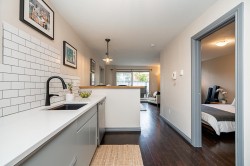 Welcome to this great 1 bed 1 bath Nicely updated Fully rainscreened perfect for entertaing unit. S/S appliances, New quartz counter tops, New backsplash, New Washer/Dryer, Newly painted, Walk in closet, office space and last but not least, almost 250sqft of private outdoor space. Enjoy the outdoors all year round with a peekaboo view of the ocean. Rainscreened in 2004 (Hardi Plank and Vinyl) this building is in great shape. Situated on a peaceful quiet street and in walking distance of Restaurants, cafes, shopping and parks. Parking, Storage but No dogs. Don't miss out as this is one of the special ones.