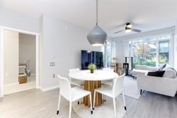 Largest floorplan in the building! This rarely available 983 sq.ft. ground-floor corner home offers a bright and spacious 2 bed + den, 2 bath layout with an oversized private patio—ideal for entertaining or relaxing. Beautifully maintained and showing exceptionally well, this home features 9 ft ceilings, large windows, modern finishings, and a highly functional open-concept design. Built by renowned Polygon with exceptional quality and concrete construction. Located in the heart of the vibrant River District waterfront community, enjoy walkable access to shops, restaurants, grocery, banks, daycare, parks, and scenic riverside trails. Central Vancouver location with quick access to Burnaby. Safe, quiet, family-friendly neighbourhood. Open House Sun Dec 21, 2–4 PM.