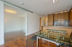 Vita at Symphony place, Award winning firm Merrick Architecture! This building is located in the heart of downtown where all the activities/entertainments are happening. MODERN 1 bdrm+den & solarium, full bath home. NW exposure looking out to Heritage building Orpheum theatre & city views. FUNCTIONAL open layout, separating living & dining area. Wide plank hardwood floors throughout. Gourmet kitchen come w/wood vaneer cabinetry, Caesarstone countertops, S/S kindred sink, AEG wall oven & cooktop, Liebherr refrigerator, Fisher Paykel dishwasher & much more. Fabulous amenities include gym, outdoor hot tub, children play area, resident & lounge, garden terrace/gaebo. Well managed building. 1 parking & storage locker included