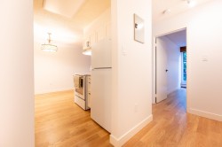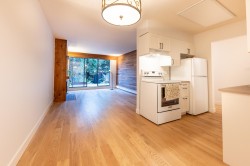 A thoughtfully renovated ground-floor home offering privacy, a unique private yard, and a superb Mount Pleasant location. This is an extra large one-bedroom and den or Junior 2 bedroom. It opens to a spacious, fully private backyard framed by 5m tall cedar trees, with a terraced garden and partially covered patio — a rare feature. Inside, extensive renovations with new oak hardwood flooring, new kitchen, and a redone bathroom. In-suite laundry (permitted) with GE all-in-one unit, gas fireplace. Heat and gas included in strata fees. One parking and one locker included. A well-maintained, community-oriented building with recent major maintenance and beautiful gardens. Steps to Main Street shops and amenities, future SkyTrain station, parks, cafés, etc.