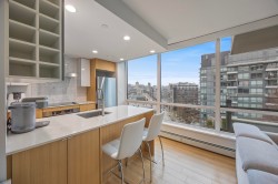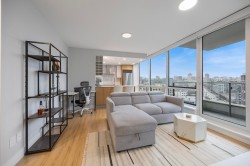 A standout south-west facing corner 1 bedroom + den at Tower Green, perfectly positioned in Vancouver’s sought-after False Creek neighbourhood. This bright home offers unobstructed City Hall views, 8'4 ceilings, and a smart, efficient layout that feels larger than expected. The U-shaped kitchen features full-size appliances and generous in-suite storage with no wasted space. Updates include Lutron electric curtains with wall panels and app control, new fridge, LED ceiling lights, updated bathroom fixtures, magnetic kitchen faucet, and a new bedroom rug. Portable AC included. Enjoy the seawall steps from your door and easy access to both the Canada and Expo Lines. Includes 1 parking, 1 bike locker.