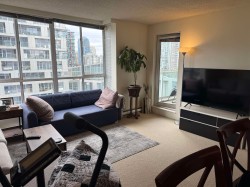 STEPS TO THE SEAWALL. Live in vibrant Yaletown, in a rare quiet and tranquil spot. Spacious and bright, open concept one bedroom condo, with a city view, and a peak at the water too. Some suite upgrades with room to add your own touches - shows well. With large principal rooms, there is loads of room to entertain, bedroom easily accommodates a king size bed. Features a patio for BBQ, in suite laundry room, parking, and storage. The Discovery is a well maintained, pet free concrete building with a live in building manager, guest suites, gym, sauna, hot tub, amenity room and a generous contingency fund. Open House Sunday November 9th from 2-4pm.