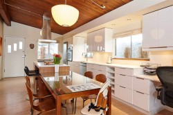 This residence is the perfect combination of mid-century modern meets contemporary open living in this uber cool family home. Designed by CH Design with thoughtful nods to the architecture of its time throughout. Custom walnut millwork by renowned furniture designer Christian Woo, seamless Corian, & stainless steel appliances. This is a unique reverse floor plan home for a very special buyer. Amazing location and view!
