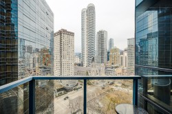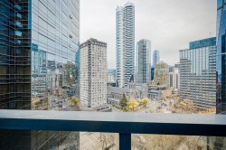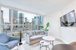Welcome to Wall Centre in Downtown Vancouver! Experience air-conditioned luxury living at the highly sought-after Wall Centre. This beautiful 2-bed+office, 1-bath home features modern renovations throughout, including engineered hardwood flooring and granite countertops. There is no bylaws regarding short term accommodations The open, efficient layout offers a spacious living area and a generously sized primary bedroom w/c is large enough to comfortably fit a king-size bed. From a well-sized balcony, enjoy serene views of the manicured cobblestone courtyard, along with city, water, and mountain vistas. Unbeatable downtown location—just steps to Robson Street shopping, restaurants, hospitals, transit, and all urban conveniences. There is no bylaw restrictions on short term accommodations.