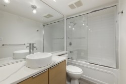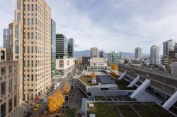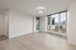 Exceptional high floor corner unit. Spacious residence with outstanding floor plan. Sweeping cityscape outlook with mountain background. Renovated floor, counters, with lux kitchen and bathroom. Expansive covered balcony for your bistro table and chairs. Best centrally located home...walking distance to shopping, restaurants, banks, library, sport facilities and more. Canada Line minutes away. Just move in...kick back...relax and enjoy.