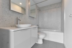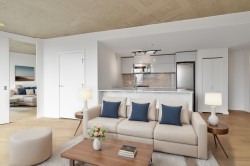 Welcome to iconic Woodwards W43 in the heart of Gastown. This upper-floor 1 Bed + Large Den home features upgraded floors, exposed concrete ceilings & floor-to-ceiling windows with sweeping city views! The open-concept layout anchored by a sleek European-style kitchen with gas cooktop, quartz counters, & modern cabinetry. The den is ideal for a home office or guest room.. Spa-inspired 4-piece bathroom with soaker tub. In-suite laundry. Concrete construction. Club W amenities: 24/7 concierge, fitness centre, rooftop terrace, BBQ, hot tub, lounge & media room. Steps to SFU, skytrain, restaurants, & Van’s tech & financial districts. A prime opportunity for end-users or investors. Short term rentals allowed with approval. Secure this AirBnB-friendly home in time for FIFA 2026 World Cup!