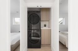 An exceptional duplex by Mirani Homes, community-minded builders known for outstanding quality. Steps to Commercial Drive, this luxurious south-facing back unit offers ALL 3 BEDROOMS ON THE 2ND FLOOR, 2.5 baths & an open-concept layout perfect for hosting. Enjoy herringbone floors, abundant natural light & inspired craftsmanship. The primary retreat ftrs a walk-in closet & a spa-inspired ensuite with double sinks. PLUS A BONUS LOFT area on the TOP FLOOR. Custom-tiled washrooms elevate every space, while the chef’s kitchen boasts Fulgor Milano appliances, premium counters, custom cabinetry & a lime-wash powder room. Highlights: radiant heat, heat pump A/C, fireplace, outdoor gas fireplace, crawl space, epoxy-finished garage & seamless outdoor flow to the sunny yard.