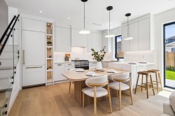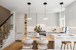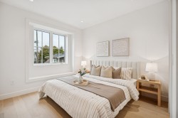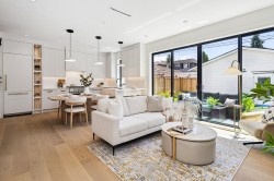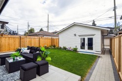 BACK UNIT SOUTH FACING DUPLEX in the Main area-3 bed, 3 . 5 bath home ftrs bright& well-designed living in one of Vancouver's top neighbourhoods . Enjoy an open layout w/custom built-in, entry closet, a dedicated dining area, custom designed modern kitchen w/ premium panel -ready appliances, breakfast bar. Large patio door leads indoor living space open to the bright south facing patio in the beautiful spacious backyard, BBQ hood-up ready . Great size master bedroom (king bed) with custom-made built in cabinet, double sinks bath. On the top floor, step out to a south covered oversized balcony for year-round use. Enjoy modern living in trendy MAIN ST-just steps from Oakridge Mall, Queen Elizabeth Park, vibrant restaurants and shopping. Extra storage on mainfloor & Heated garage for bonus!