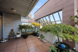 Discover this exceptional 2 bed, 2 bath residence in an exclusive concrete low-rise boutique building. The showstopper is the massive 772sf north-facing deck, where a unique window wall creates a seamless indoor-outdoor flow, ideal for entertaining, gardening, or a private retreat. Inside, enjoy a sophisticated layout featuring high-end finishings, rich hardwood floors, and efficient A/C for year-round comfort. This rare offering includes two secure parking stalls and an oversized 10'x10' private storage room for convenience. Perfectly centered in a walker's paradise, you're steps from the scenic Seawall, Granville Island, and the vibrant shops and restaurants of Kitsilano. Experience a refined blend of comfort and lifestyle in Vancouver's most desirable, central urban hub. Don't miss it!