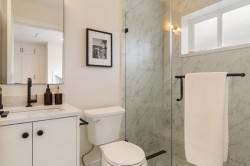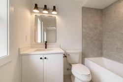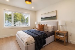 Introducing LAKEWOOD COURT! Built by the reputable Alaris Developments, this boutique collection of 4 homes is a welcome addition to the Commercial Drive community. This spacious back unit has a bright open main floor with a comfortable living area, stylish powder rm & proper dining area w/ French doors to the fenced backyard. The chef-inspired kitchen has integrated SMEG appliances, 6 burner gas range, stone backsplash, pot filler and large island. Upstairs has 2 bedrooms, each with ensuite bathrooms & laundry room. The top floor retreat has another ensuite, private balcony & sweeping views over the city & mountains. Radiant heat, A/C, crawlspace, single garage & more! Just steps to cafés, shops, parks & schools, Lakewood Court blends modern living with a vibrant East Van lifestyle.