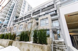 A Rare Urban Gem! This unique 1 Bedroom + Den residence features an expansive 200 sq ft patio perfect for entertaining and dog owners. Enjoy the convenience of a private Townhouse-style entry on the quiet side of the building, offering comfort and privacy. Step inside to a thoughtfully designed interior complete with AC, sleek laminate flooring, premium BOSCH kitchen boasting a 5-burner gas cooktop and more. Enjoy the spa-inspired bathroom with soaker tub and built-in vanity shelving. Located in Norquay Village, steps from SkyTrain, T&T, Shoppers and a quick bus ride to Downtown. Enjoy first-class amenities: rooftop garden, BBQ area, fitness center, and residents’ lounge with kitchen. 1 Parking inc. Rentals and 2 pets allowed. OPEN HOUSE Sat Nov 8, 2-4PM!