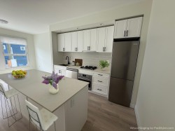 Welcome to Rail town. This newly renovated 1bdr and 1 bath condo is waiting for your finishing touches. Fantastic open layout. 9'ceilings and new laminate flooring through out.The gourmet kitchen has been updated with new appliances and hardware including a Gas cooktop and electric oven, fridge and dishwasher. Quartz counter tops and tiled back splash. Brand new cabinets through out.there is an out door communal space with a barbeque to enjoy anytime. Lots of amenities close by, restaurants, micro breweries and local shopping nearby.Parking may be available for rent.Storage locker #15 and a secured bike room.
