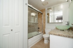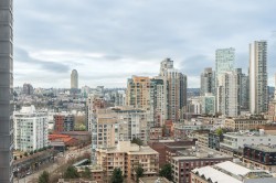 This spacious 2-bedroom plus den (ideal as a third bedroom), 2-bath residence features floor-to-ceiling windows that flood the home with natural light and showcase stunning southwest-facing city views from every room. The open-concept kitchen is perfect for both everyday living and entertaining, offering a large island, granite countertops, & SS appliances. The generous den, complete with views toward False Creek, can easily be converted into a third bedroom. The primary bedroom comfortably accommodates king-sized furnishings & includes a custom walk-in closet for added convenience. Enjoy unbeatable urban living just steps from the Seawall, Rogers Arena, Pacific Centre, and an incredible selection of restaurants, cafes, and shops. Includes 1 parking stall. Rentals allowed. Sorry, no pets.