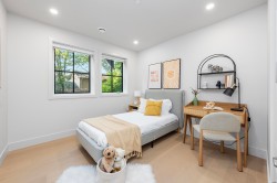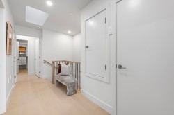 Proudly built by MEDALLION HOMES a trusted builder known for consistent quality & craftsmanship this north-facing front unit is a true statement in East Vancouver living. Medallion is renowned for creating homes that are both beautiful & built to last & this one is no exception. Featuring Fisher appliances, abundant cabinetry, a spacious powder room & thoughtful details like hidden storage, a medicine cabinet, & full irrigation. The primary suite offers a bay window, double sinks, frameless shower, walk-in closet, and hidden bathroom cabinetry. All three bedrooms are upstairs for ideal family living. With a fenced front yard, Alhua Ring doorbell, and an 80 Walk Score, this home delivers style, comfort, and security. Located right across from Laura Secord Elementary & minutes to Trout Lake!