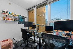 Bright, beautiful, and updated 1 bedroom + den + solarium at SPECTRUM 1, spanning almost 700 sq.ft. with gorgeous city views! This open-concept layout feels spacious and functional — perfect for investors, first-time home buyers, or downsizers. Recent updates include: brand new fridge, stovetop, hood fan, oven, new flooring, and a fresh coat of paint throughout. Spectrum offers outstanding amenities including an indoor pool, fitness centre, and residents lounge. The large living/dining area that allows for multiple furniture configurations, a bright solarium or den ideal for working from home, plus a generous flex/storage room that can serve as additional office space if needed. Situated in an unbeatable location, you're only steps away from Costco, T&T, Rogers Arena, and much more!