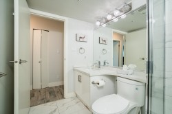 Welcome to this tastefully updated 2 bed, 2 bath SW corner unit at Point Claire, located in the heart of prestigious Coal Harbour. Spanning 945 sq.ft., this home offers a smart and functional layout with floor-to-ceiling windows that flood the space with natural light and showcase views of the private courtyard, city skyline, and partial ocean and mountain vistas. The renovated kitchen and bathrooms (2019) feature modern finishes and ample storage. Enjoy resort-style amenities including an indoor pool, hot tub, sauna, gym, concierge, EV charging, and a serene courtyard. Includes 1 parking stall and a storage unit. Steps to the seawall, Robson Street, and Vancouver's Financial District. A rare opportunity in a well-maintained, sought-after building! Open House: Sat Nov 15 2-4PM