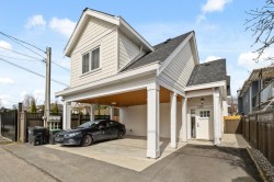 Beautifully crafted side-by-side 1/2 duplex, where modern design, quality finishes, & thoughtful details come together seamlessly. Across 3 spacious levels, you’ll find 3 bdrms & 3 bthrms, complemented by bright, open living spaces with soaring ceilings & rich hardwood floors. Gourmet kitchen W/integrated appliances is perfect for gatherings, while the front & back porches offer inviting spots to unwind. Designated parking, NO strata fees, & home warranty—plus all the benefits of a nearly brand new home with NO GST! A gorgeous laneway home at the back of the property is also for sale, offering a rare opportunity for investors or multigenerational living. Situated on a fantastic street just steps from vibrant Commercial Drive, parks, shops, transit, & Lord Nelson Elementary.