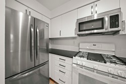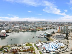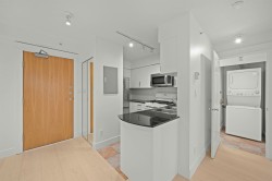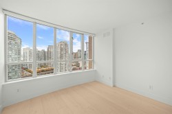 Recently renovated and ideally situated near the top floor, this elegant suite offers stunning Southwest-facing water views in Downtown. Updates include new flooring, modern blinds, and fresh paint throughout. The sleek kitchen features brand new, high-quality appliances—oven, microwave, fridge/freezer, dishwasher—plus new cabinetry and quartz countertops. The bathroom showcases a new vanity, bathtub, and tiles. Additional highlights include brand new in-suite laundry, a gas stove, central A/C, secure parking, and a storage locker. Conveniently located near Stadium Station, Rogers Arena, shops, restaurants, and fitness options. Residents enjoy premium amenities including a shared workspace, pool, jacuzzi, sauna, and gym. Schedule your private viewing today!
