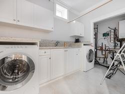 Elegant home in Quilchena's heart offers stunning views. Tailored with superior craftsmanship, it features three ensuite bedrooms on the upper floor overlooking the Prince of Wales Park and mountains. The landscaped ground highlight a peaceful pond. The modern kitchen showcases a granite island and top-tier Miele appliances, accompanied by a six burner gas cooktop and potent Thermador hood. Interior finishes include premium wall paper, blinds, stone flooring, and a unique entrance pattern. Amenities encompass sensor bathroom lighting, a jacuzzi, radiant heating, advanced ventilation, air conditioning, and a security system.