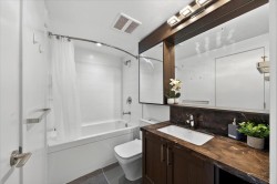 Experience elevated living on the 30th floor of Wall Centre Central Park. This sleek 1 bed, 1 bath home features floor-to-ceiling windows, an open-concept layout, and refined modern finishes throughout. The contemporary kitchen offers stone countertops and premium appliances, flowing seamlessly into a bright living space with stunning city and mountain views. The spacious bedroom and spa-inspired bath create a peaceful retreat. PLUS enjoy a den with organizers for storage AND solarium! Enjoy resort-style amenities including a 60-ft lap pool, hot tub, fully equipped gym, and expansive rooftop gardens. Steps to SkyTrain, Safeway, Central Park, cafes, and dining. 1 secure parking included.
