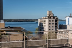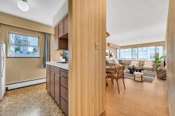 Experience the best of West of Denman living! This bright, corner south/west-facing 1-bedroom suite is full of natural light and ready for your ideas. Easily converted to a junior two-bedroom, this home accommodates house-sized furniture, including a king-sized bedroom. One block from the beach, seawall, and Stanley Park, and surrounded by shops and cafes in a charming, tree-lined neighbourhood. Unbeatable value per square foot for freehold land in this prime location. Solid concrete construction, updated elevator, roof, boiler, and piping. Enjoy free shared laundry and a sun-drenched common rooftop deck with gorgeous English Bay views. 35% down. Adult-oriented building (19+), 100% owner-occupied—no pets or rentals ensures a peaceful community. Easy to show by app. Open Jan 31st 2-4.