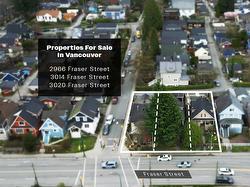 Land for sale under the Broadway Plan, City zoned for mid to high-rise potential. Good for future development, currently tenanted. Property can be sold with 2 other neighboring lots. Addresses listed 3014, 2966 Fraser Street. Property currently rented with consistent rent coming in. Multiple options for development in the area and potential for long term hold, perfect for investors interested in future development under the City of Vancouver Broadway Plan, many options available. Please call if interested for further information!